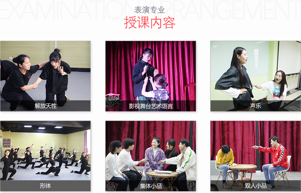 | 提高班 | 8.5-8.30 | 根據學生自身條件以及表演專業程度個性化教學,避免“流水線”式的教育,強調因材施教,由點到面,由淺到深,由易到難、逐步攻克專業難點,全面提升專業素質。 |