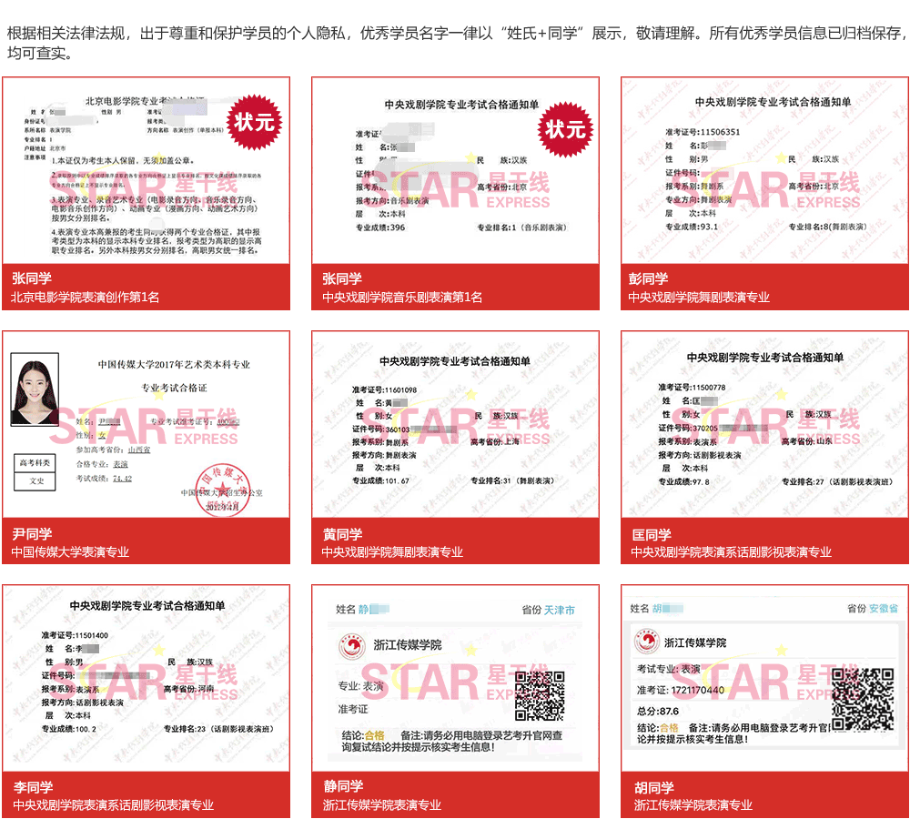| 五一游學營 | 5.1-5.5 | 針對不同層次、懷有傳媒藝術夢想的學員的一次體驗式教學活動,本次研學營從課程設置到師資搭配,都是星干線藝考里程碑式的配置,根據不同學員的自身素質、專業水平、文化課成績、意向報考院校等多方條件,對學員進行綜合考量測評,為學員量身定制一套科學系統的藝術成長之路,包括專業方向的選擇、學習規劃、課程安排。 |