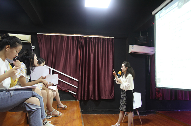 在本次課上,陳紅教授也為同學們詳細的講解了自備稿件該如何準備。首先,陳紅教授建議同學們在準備自備稿件時最好選擇敘事型散文,因為這樣做能讓考官將注意力分散一部分到故事情節上,而不是全心全意的去注意你的發音存在著哪些問題。
