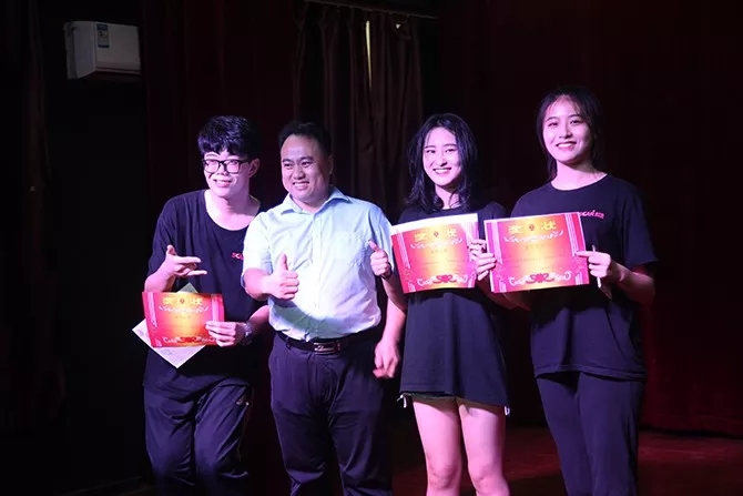 看完了表演班的同學們的精彩演出,當然要對同學們的表現做出肯定。此次結課匯報儀式,星干線為表現優異的同學們舉行了頒獎儀式,并由王豐福校長親自為表演專業階段性測評中獲得前三名的同學頒發獎狀和教育基金。