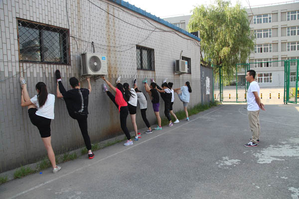 雖然并不是每一個學(xué)員的動作都很規(guī)范,在壓腿的時候,有些學(xué)員的腿還不能伸直,有些學(xué)員堅(jiān)持不了較長時間,但是他們并沒有因此而放棄,他們一直在努力。
