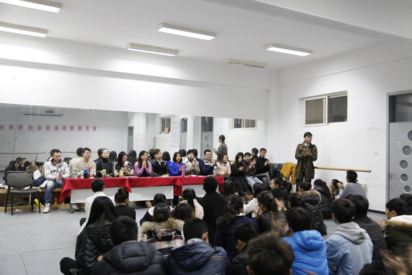 本次考試和前兩次模擬考相比,最大的不同在于增加了“考官問答”部分,這也是每所院校面試時必需的環(huán)節(jié)。面對考官們五花八門的“刁鉆”問題,有些考生還能夠較為輕松地回答,而有些同學(xué)的表現(xiàn)則讓人忍俊不禁。例如老師以中央戲劇學(xué)院的考官身份問學(xué)生為什么選中戲而不選北電,學(xué)生回答中戲教學(xué)比較嚴謹,而另一位老師馬上會以北電考官的身份發(fā)問:“同學(xué)你是在說我們北電不嚴謹?”