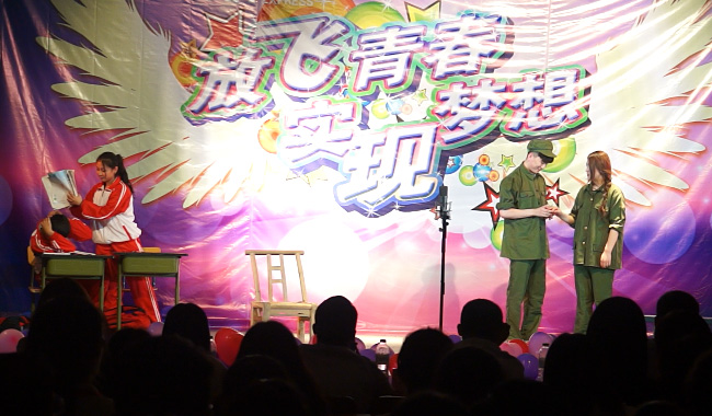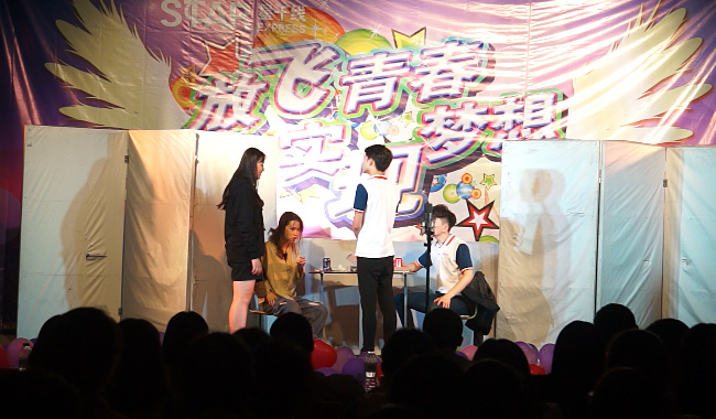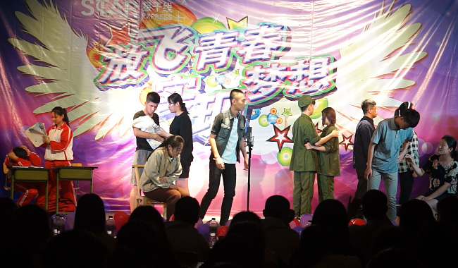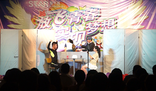 表演班、播音班、音樂(lè)班、舞蹈班集體表演小品“時(shí)間都去哪了”