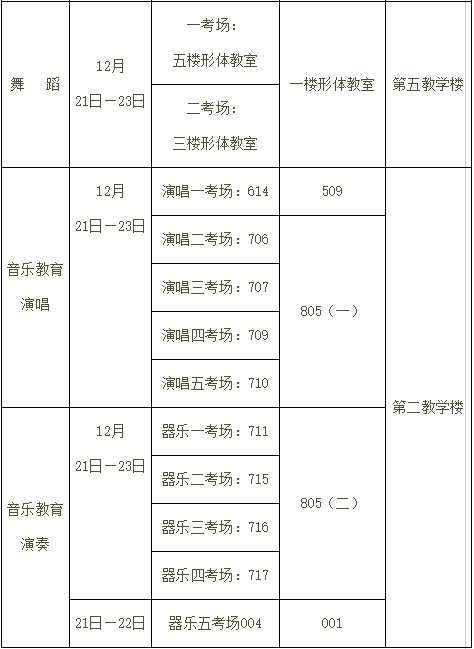 遼寧省藝術類專業統考音樂舞蹈類考點