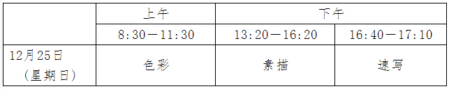 速寫科目采取人物動態默寫方式考查;素描和色彩科目使用圖片模擬寫生方式考查。試卷一律采用8開紙作為統考用紙(由考場統一提供),全部科目實行網上閱卷。