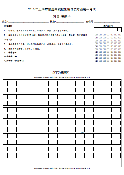 為確保上海市普通高校編導(dǎo)類專業(yè)統(tǒng)考評卷質(zhì)量,使評分更加公平公正,2017年編導(dǎo)類專業(yè)統(tǒng)考科目全部采用網(wǎng)上閱卷的方式。考生作答時(shí)須注意以下事項(xiàng):