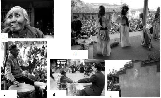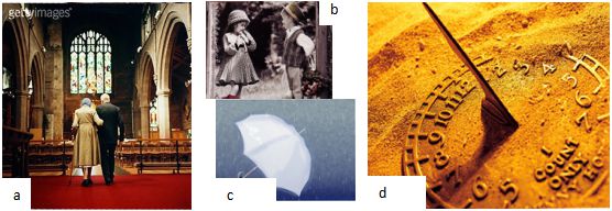 問題:如果是你碰到以上圖示拍攝場景,取景時考慮的構圖要素是: ( a b c d e )