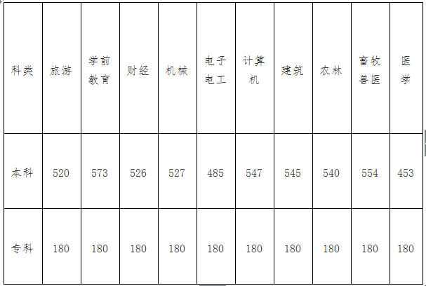 注:以上專業(yè)分為我省相應科類專業(yè)統(tǒng)考合格線