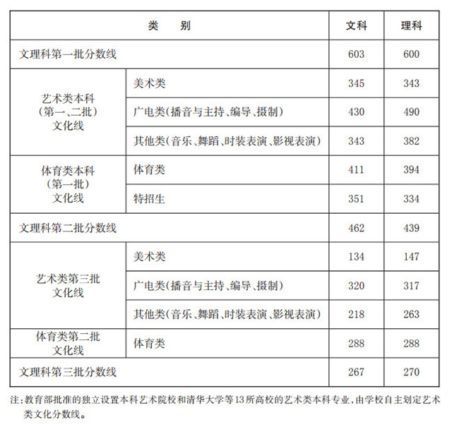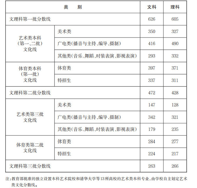 二、2016 年浙江省普通高校招生各批分數線