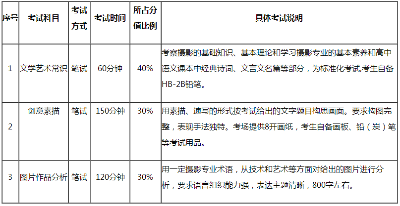 哈爾濱師范大學2018年黑龍江攝影專業考試說明
