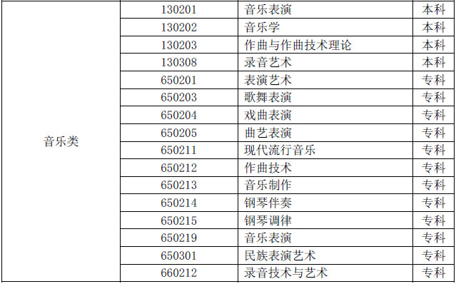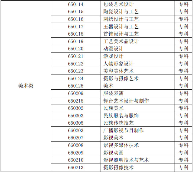 (一)《普通高等學校本科專業目錄(2012 年)》中“藝術學門類”下設各專業,以及《普通高等學校高等職業教育(專科)專業目錄(2015 年)》中“藝術設計類”“表演藝術類”下設各專業和“民族文化類”“廣播影視類”等部分專業,可編制藝術類招生計劃。