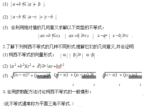 本部分包括必考內(nèi)容和選考內(nèi)容兩部分.必考內(nèi)容為《課程標準》的必修內(nèi)容和選修系列2的內(nèi)容;選考內(nèi)容為《課程標準》的選修系列4的 “坐標系與參數(shù)方程”、“不等式選講”等2個專題.