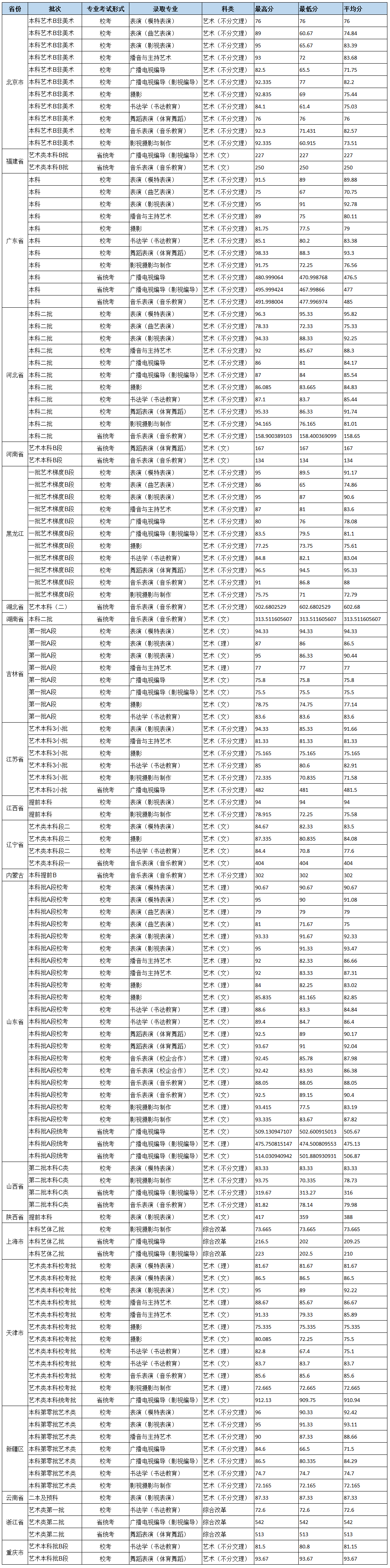 2、非美術(shù)類專業(yè)統(tǒng)計分?jǐn)?shù)為專業(yè)課成績,對于使用統(tǒng)考成績的省市(除上海市),統(tǒng)計分?jǐn)?shù)是按照各省規(guī)定折算后的投檔成績統(tǒng)計。