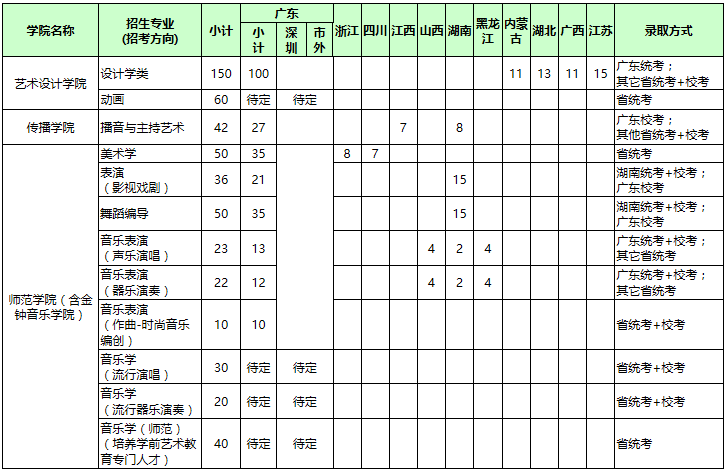 注:部分專業計劃待定;廣東省內部分專業分區域計劃待定。