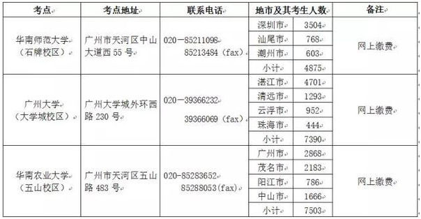 2016年廣東省普通高考美術術科統一考試將于2016年1月10日舉行。考生分別安排在華南師范大學(石牌校區)、暨南大學(石牌校區)、華南農業大學(五山校區)、廣東工業大學(大學城校區)、廣州大學(大學城校區)、廣州美術學院(大學城校區)、廣東第二師范學院(海珠校區)等七個考點考試,具體安排考點情況如下: