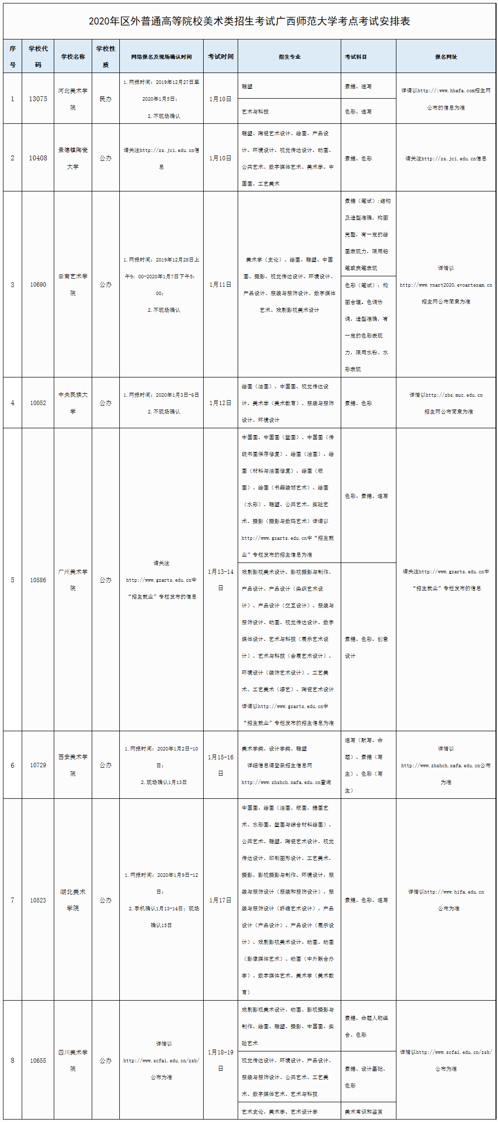 2020年區(qū)外普通高等院校非美術(shù)類(lèi)招生考試廣西師范大學(xué)考點(diǎn)考試安排表 |
