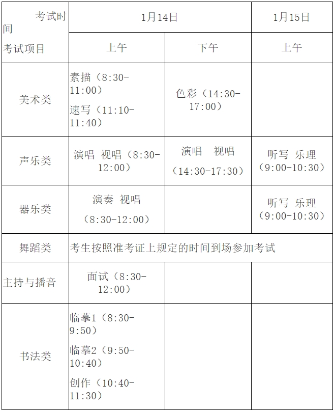 報(bào)考藝術(shù)類專業(yè)考試的考生須先參加藝術(shù)類的專業(yè)考試,再參加6月7日至9日文史類的普通高等學(xué)校招生全國統(tǒng)一考試(文化考試)。其中,藝術(shù)類專業(yè)的省級(jí)統(tǒng)考安排如下: