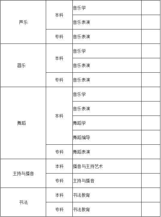 各考試類別與藝術(shù)類招生專業(yè)對應(yīng)表