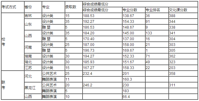 2、對于使用聯考成績的省份,公共藝術專業按“高考文化課成績*20%+省統考專業成績*80%”的總成績擇優錄取;舞蹈表演專業按考生統考專業成績擇優錄取。
