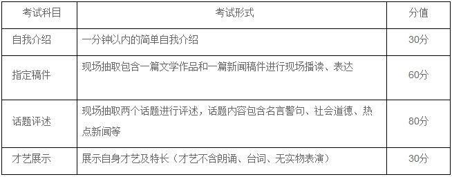2.播音與主持藝術專業考試科目及分值(總分200分)