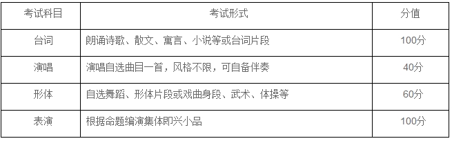 表演考試是對考生內外在素質的綜合考查。除了對考生外部形象、氣質進行考查外,更主要的是對考生的想象力、理解力、表現力、激情和應變能力等內在素質的考查。