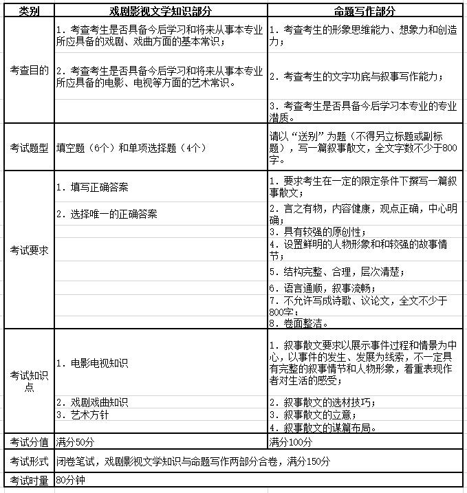 戲劇影視文學專業招生考試由下面兩門科目的筆試組成,滿分300分。