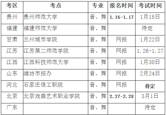 | 北京 | 北京城市學院 | 素描、色彩 | 1.29 | 1月30日 |