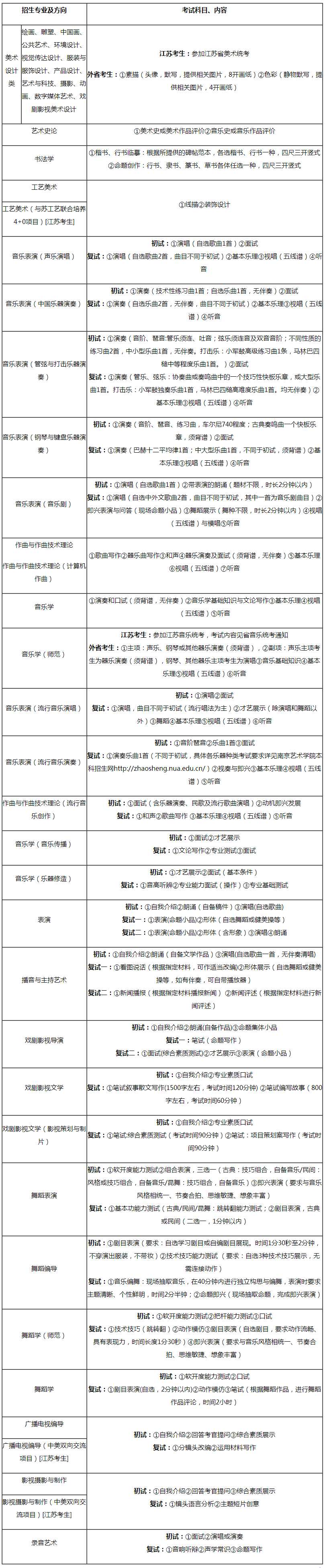報(bào)考其他學(xué)院的音樂學(xué)(師范)、繪畫、中國畫、雕塑、公共藝術(shù)、環(huán)境設(shè)計(jì)、視覺傳達(dá)設(shè)計(jì)、服裝與服飾設(shè)計(jì)、產(chǎn)品設(shè)計(jì)、藝術(shù)與科技、戲劇影視美術(shù)設(shè)計(jì)、攝影、動(dòng)畫、數(shù)字媒體藝術(shù)(含中英合作辦學(xué))專業(yè)的江蘇省考生,只需參加江蘇省音樂或美術(shù)專業(yè)統(tǒng)考。