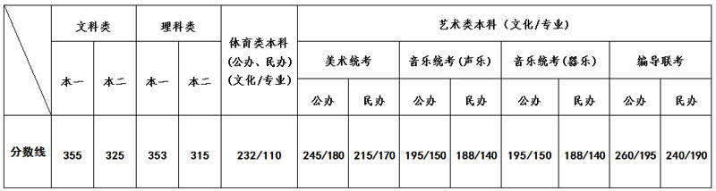 注:一、藝術類??急究茖I錄取最低控制分數線: