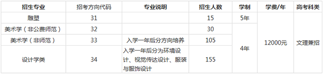 雕塑、美術學(非公費師范、非師范)、設計學類專業: