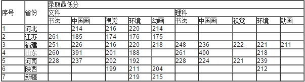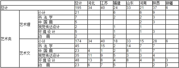 7.新疆維吾爾族自治區:詳見新疆維吾爾族自治區招生委員會辦公室關于美術類考生報名的通知。