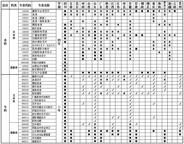 三、四川電影電視學(xué)院2018年招生省份專業(yè)一覽表