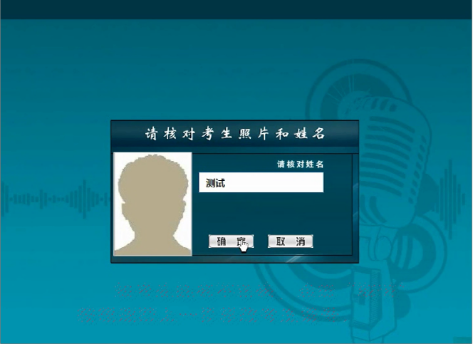 【說明】:如考生姓名不正確,點擊“取消”按鈕返回上一步修改專業考號;如核對無誤,點擊“確認”按鈕進入設備測試頁面。