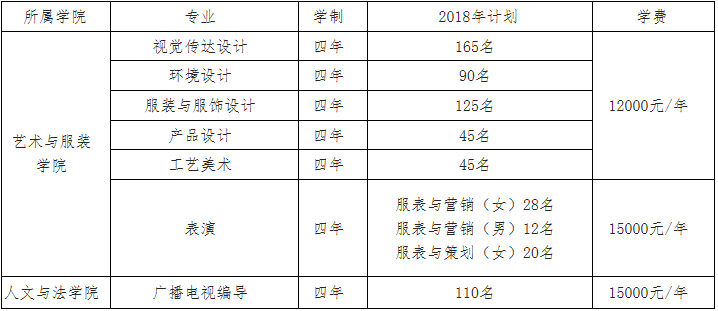 二、我校2018年藝術類本科校考專業招生計劃我校藝術設計學類總計劃470名,表演專業總計劃60名,廣播電視編導專業計劃110名,