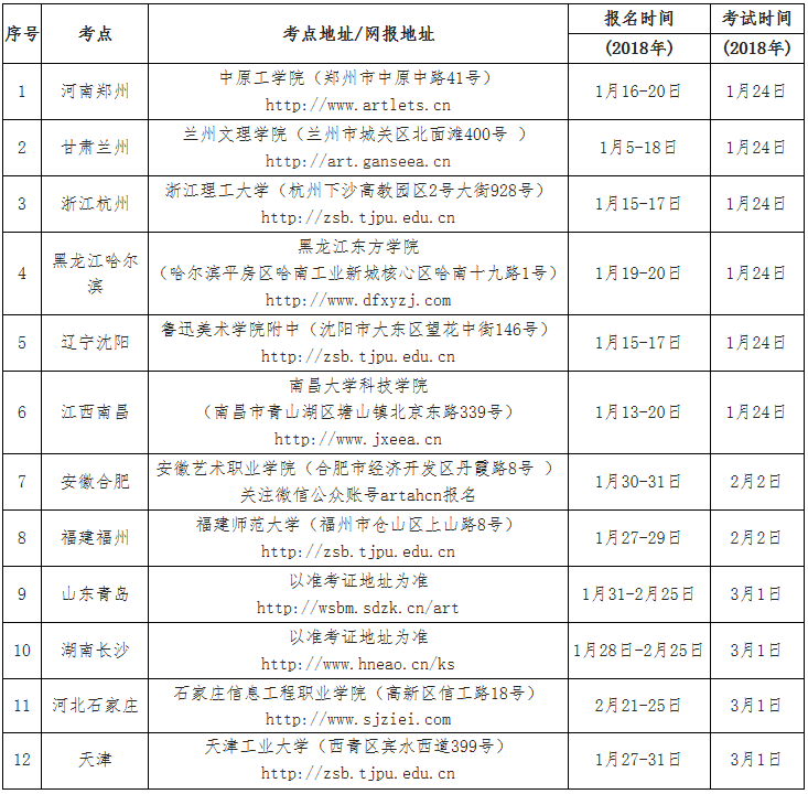 (三)藝術設計學類專業考試地點及時間
