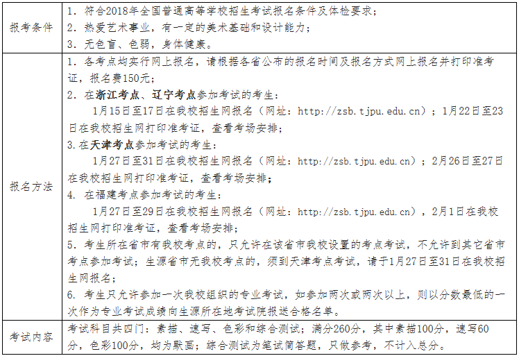 天津工業大學2018年藝術類專業招生簡章