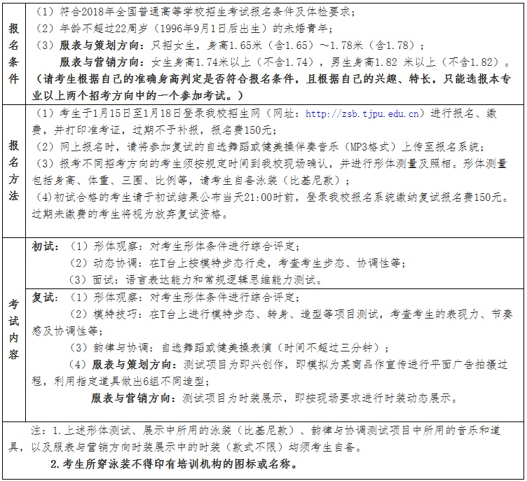 1.有服裝表演統考的省、市、自治區,統考必須合格;