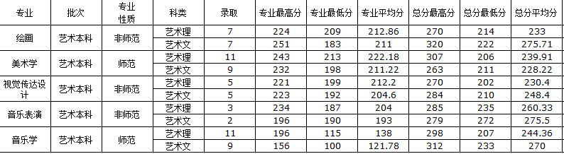 | 音樂學 | 藝術 | 師范 | 0 | 0 | 1 | 161 | 0 | 0 | 1 | 298 | 0 | 0 | 1 | 267 | 2 | 229 | |||||||