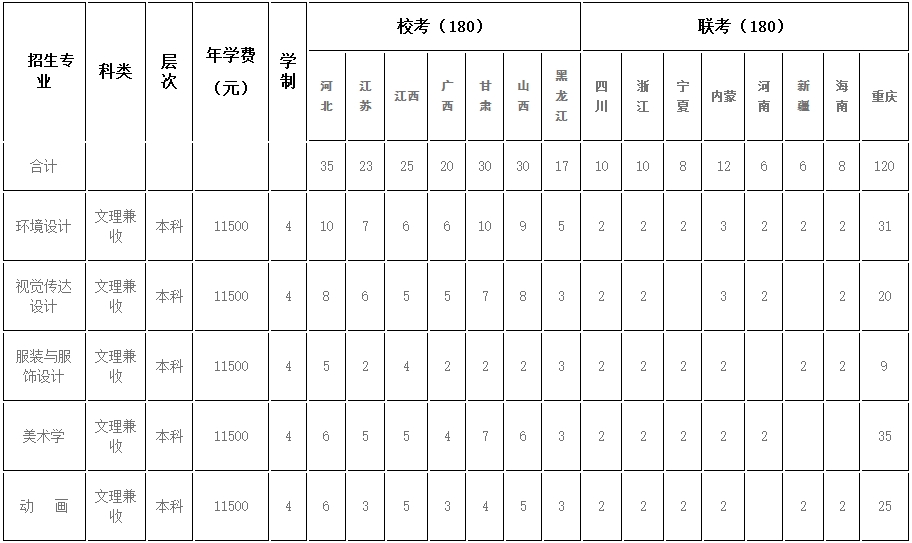 ② 河北、江蘇、江西、廣西、甘肅、山西、黑龍江考生參加生源省(自治區(qū))美術(shù)類專業(yè)統(tǒng)考且成績合格,方可參加我校在該省組織的美術(shù)專業(yè)校考。我校不接受考生跨省報名考試,生源地考生只能在生源省份考點報名考試,校考成績方可有效。